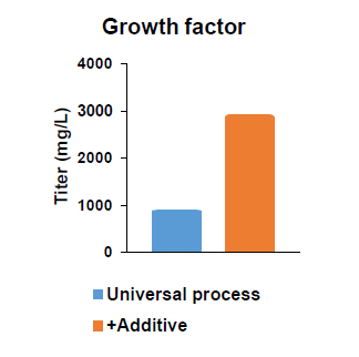 對于培養(yǎng)過程中對細(xì)胞產(chǎn)生一定壓力的蛋白,通過添加劑增加細(xì)胞耐受也可以提升表達(dá)量。DTEasy專有添加劑可只需在培養(yǎng)過程中簡單的單次添加,即可最高提升3倍表達(dá)量。