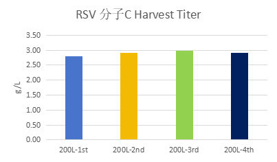 RSV分子A的5個(gè)批次的表達(dá)量均在2g/L左右,RSV分子B的表達(dá)量最高可達(dá)3.2g/L左右。